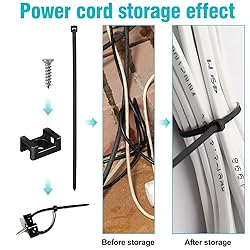 Package contains: Includes 55Pcs 6" zip ties,55Pcs cable tie bases, and 55Pcs tapping screw. High-Quality Material: The holder and cable ties are made of UL-certified industrial strength nylon fireproof material, which has high toughness, anti-aging, is not afraid of alkali, oil, and UV and the maximum tensile strength is 50 lb. compliant for indoor and outdoor environments. Convenient Making:It is suitable for fixing wire. After fixing with screws, it is threaded into the hole with a cable tie. Well-designed:Saddle-shaped design, easy to fix cables. These cable tie holders for easy concealment, the ties lock themselves without the need for additional tools, and the screws are stronger than adhesives, giving you the most stable solution for harness organization. Wide Applicability: Indoor/outdoor multi-purpose cable tie mounts, suitable for various purposes such as computer cables, TV cables, Christmas lights cables, cars, houses and offices, sheds, gardens, garages, plants, etc.