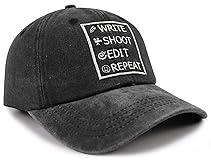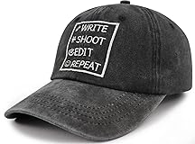 High Quality Material: Our Write Shoot Edit Repeat Hats for Women Men is Made of 100 Percent Cotton. Design Style Simple But Show Elegant Demeanour, Reusable, Soft Comfortable Breathable Wick Sweat Away Very Fit Your Head.Perfect Gifts for Yourself, Family, Friends. Funny Director Hat Great for Filmmaker Gifts, Film Making Gifts, Movie Director Gifts, Film Students Gifts, Film Producer Gifts, Film Gifts, Film Director Students Gifts. Adjustable Snap Closure: Filmmaker Hat Circumference: 21.65-23.62inches / 55-60cm. Brim: 2.75inches / 7cm. Height: 3.54inches / 9cm. Adjustable Back Snap Closure So You Can Adjust to Get the Perfect Fit. Director Gifts for Men Women: Summer Classic Jean Boat Hair Dont Care Hat for Women Men, Washed Cotton Quick Dry Twill Adjustable Beach Hat, 6 Panel Structure, 6 Embroidered Eyelets. Breathing Hole Design Increases the Permeability of the Hat. Pre-curved Brim for Coverage, Wearing This Comfortable Hat womens Mens Baseball Hat Protect Your Skin from Harmful UV Rays and Keep Your Hair Out of Your Face and Eyes. Suitable for Any Occasion: Movie Decorations Director Hat is Very Suit for Movie Party, Movie Night Party Decorations, Running, Sports, Street Dancer, Summer Beach Activities, Camping, Hiking, Oscars Themed Party Decorations, Gardening, Traveling, Movie Birthday Party Decorations, Fishing, Movie Premiere Party Decorations, Boating, Hunting, Family Movie Night Supplies, Cookouts or Outdoor Sports, Out with Friends, Costume Parties or Any Other Occasions. Perfect for Women Men, Mama, Papa,mom, Dad, Mother, Father, Daughter, Son, Wife, Husband, Grandma, Grandpa, Aunt, Uncle, Sister, Brother. Suitable for Birthday, Father's Day, Mother's Day, Valentines Day, Christmas, New Year, Anniversaries, Various Holiday Gifts.
