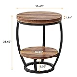 Rustic Industrial Style: This round end table combines rustic wood with a sturdy metal frame, fitting farmhouse, industrial, or modern décor. Perfect as a living room accent table, bedroom nightstand, or stylish office side table Space-Saving with Storage: Designed with 2 open tiers, this small side table keeps drinks, books, or décor within reach. Its round & compact shape fits beside a sofa, bed, or chair, making it ideal for small spaces and cozy corners Durable & Stable: Crafted with premium MDF and a reinforced metal frame, this bedside table is built for daily use. Its smooth surface is easy to clean, while the solid structure supports your living room or bedroom furniture Versatile Functionality: Use this piece as an end table, nightstand, coffee table, or accent table. Perfect for the living room, bedroom, dorm, or office, its compact size and multi-purpose design adapt to any small space with ease Quick & Easy Assembly: Set up this round side table in about 25 minutes with clear instructions and included tools. A practical, durable piece for living room décor, bedroom furniture, or small spaces