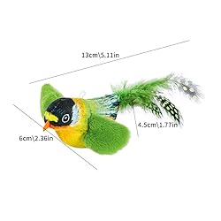 🐦Lifelike Chirping Bird Design: The Bird Cat Toy features realistic wing-flapping and vivid chirping sounds that instantly captivate your cat, encouraging natural hunting behaviors like pouncing, chasing, and batting. 🐦Interactive Playtime: Designed as friendlier "prey", this bird-shaped toy satisfies your cat's hunting instincts, providing interactive entertainment and preventing boredom. 🐦High-Quality Material: Crafted from shiny, beautiful cloth that is soft, smooth, and resistant to pulling and scratching, ensuring durability for long-lasting play. 🐦Suitable for Cats and Dogs: Versatile and suitable for both cats and dogs, this toy offers entertainment for multi-pet households, engaging pets with realistic bird sounds and interactive play options.size is 13*4.5*6cm/5.11*1.77*2.36 inch. 🐦Enhanced with a built-in bird sound device, this catnip toy triggers realistic bird calls with a touch, stimulating your cat's hunting instincts and providing engaging playtime. It can be attached to fishing rods or leashes for varied entertainment modes, promoting interactive play and movement.
