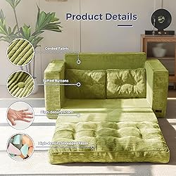 Convertible 2 in 1 Design: Our convertile sofa bed features an innovative 2-in-1 design that is easy and convenient to operate with just a gentle pull, transforming from a comfortable sofa into a spacious folding bed. Whether it's daily leisure time or sudden guests at home who need to stay overnight, it can easily meet your needs Corded Fabric and Tufted Craft: Corded fabric has a soft and delicate touch, with good breathability and wear resistance. The unique tufted process not only enhances the firmness of the fabric, but also adds a touch of retro and fashionable feeling to the overall design Generous Dimensions: With a sofa size of 32"L x 55.5"W x 21"H and a spacious sleeper size of 83.5"L x 40"W x 7"H, Using high-density support foam filling, it can provide excellent support and comfort in both forms,making it an ideal choice for both lounging and sleeping Multi-functional Use : This folding sofa couch is favored for its versatility and comes with two pillows, suitable for various living scenarios. Whether it's the living room, study, balcony, or guest room, it can perfectly blend in and become an ideal choice to enhance home style and practicality Effortless Setup: The folding sofa is pre filled, you don't need to fill it yourself, just unfold, tap and shake to restore the compressed elasticity, wait for about 48 hours to return to its original shape and enjoy!