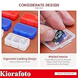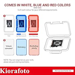 This clear memory card case set contains 18 separate card holders and each unit stores 1 MicroSD/MicroSDXC/MicroSDHC/TF/MSD card independently. The memory card holder is made of high-impact PP plastic material and is pressure-proof, sturdy, and durable.Thanks to the transparent design, you can find the interior contents and keep cards at your fingertip. It comes with transparent TF card holders in clear, red, and blue colors, 6 per color to meet your different color preferences. This Memory Card Case stores 20 SD/SDHC/SDXC and 40 MicroSD/MicroSDHC/MicroSDXC/TF cards (Memory cards are NOT included), meet your daily memory cards storage needs. Push the button upwards with one hand to pop up the memory card holder, and when it closes, you will hear a "click" sound to lock the memory card case.