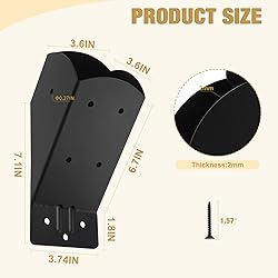 High Quality Material:45° Pergola Angle Support Bracket is made of industrial grade carbon steel, precision welded by machine arm, with even and solid weld joints and professional black outdoor high-temperature powder coating on the surface, which is waterproof and rust-proof, and can provide long-lasting and reliable support for wooden posts. pergola bracket Size: L3.74"xW3.74"xH8.1",Thickness: 2mm,Each bracket is angled at 45 degrees and designed with drainage holes to provide optimal support for the 4''x4'' (Actual 3.5"x3.5")wooden posts, ensuring a stable and secure pergola structure. Widely Use:Add 45°degree angle load support by installing this inside-mount strap brace inside a 90°angle.These pergola support brackets is suitable for gazebos, garage, tree houses, the terrace, lawn, log cabin, courtyards and so on. Quick Installation:Simply cut the timber to the required length and angle (Wood joists need to be cut and sanded at 45° at both ends), insert the ends into the pergola brackets and screw them to the beams and vertical posts. Package includes:4 pcs 4"x4" angled brackets, 36 pcs screws.