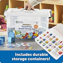 - Looking for an easy way to help kids learn preschool skills? Supplement your curriculum with this enrichment set! Designed by a professional educator with small groups in mind, this preschool learning toy helps kids learn numbers, letters, colors, and shapes. They'll discover everything from word families and beginning sounds to counting, patterning, addition and subtraction with this set's 30 double-sided activity cards. Plus, math manipulatives, ABC learning tools, and other toddler learning toys add hands-on play to each lesson. How does this preschool classroom set help kids learn? There's a sturdy storage bin, and a 20-page home connection booklet packed with activities that build tracing, coloring, and cut-and-paste skills. Best of all, the Skill Builders! Preschool Small Group Kit makes an easy addition to Montessori toys and homeschool supplies. We're Learning Resources, and learning is where we play. Whether we're introducing toddlers to sorting and stacking, teaching kindergarteners the foundations of fine motor and social-emotional skills, or building elementary-ready STEM and coding skills, our award-winning products help kids discover fun, easy ways to learn, play, and grow. That's why parents, teachers, and occupational therapists trust us. Check out all of our best-loved toys at our brand store! What are the main skills that kids can learn with this toy? The Skill Builders! Preschool Small Group Kit helps kids develop early language and math skills. How many pieces are included with this toy? This set includes 689 pieces. What is this toy made from? Our toys are made from durable, wipe-clean plastic that's designed for years of learning fun. This toy is compliant with EPA lead regulations. Where can I get a replacement part? While we're unable to stock replacements for every component that comes with our toys, we'll do our best to find the part or piece that makes your toy whole again. Just submit a request here with a description of the piece, and we'll let you know if and when we find it.