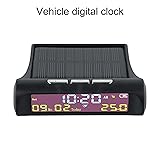 【High-efficiency solar panels】The AN01 TPMS Look Solar Car Digital Clock is equipped with high-efficiency solar panels, ensuring a super long battery life without the need for constant charging. 【Large-capacity built-in lithium battery】With its large-capacity built-in lithium battery, this car clock guarantees reliable performance even on cloudy days, eliminating any worry of power shortages or interruptions. 【High precision LCD display】The high precision LCD display of the clock provides clear and accurate , date, and week information, allowing for easy management and organization. 【Built-in clock, date, week】In addition to displaying the , the clock also features a built-in calendar that shows the date and week, providing comprehensive and convenient information at a glance. 【Car interior temperature display】This digital clock goes keeping and showcases the current temperature inside the car, allowing drivers to stay of the temperature conditions for a comfortable and pleasant travel experience.