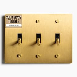 Elegant Satin Brass Finish: Crafted from solid brass and finished in a rich satin brass tone, our toggle switch helps bring vintage character and a warm metallic touch to walls. Its classic design pairs well with both traditional interiors and transitional spaces. Includes Wall Plate & Mounting Hardware: Our toggle switch includes a matching satin brass faceplate and all necessary mounting hardware. Designed for standard U.S. electrical boxes, it helps provide a clean and simple upgrade without requiring extra tools or parts. Manual On/Off Toggle Control: Featuring a sturdy toggle mechanism, our switch helps deliver reliable on/off functionality with a tactile, click-action feel. Built for everyday use, it helps provide intuitive manual control over lighting in any room. Built for Standard Loads: Engineered to support up to 15 Amps at 120 Volts, our wall switch is suitable for a wide range of household lighting needs, from ceiling fixtures to sconces and wall-mounted lights. Luxury-Inspired Design: Ideal for living rooms, bedrooms, offices, or entryways, this vintage-style switch enhances interiors with a timeless look while offering dependable lighting control for everyday applications. Upgraded Hardware: Enhanced screw quality helps prevent stripping and snapping, ensuring secure fastening and easier installs on brass switches.