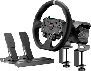 Solid bundle to entry the direct drive world, this Moza R3 kit is designed for PC Users (Not Compatible with Xbox), delivers high-performance sim racing at an exceptional price 4-in-1 Kit includes R3 DD Wheelbase, ES Lite Steering Wheel, SR-P Lite Dual Pedals and Table Clamp The R3 base has aviation-grade aluminum construction in a compact, innovative X-shape design. Its 3.9Nm DD servo motor delivers an ultra-low torque ripple & groove torque. Feature with Intelligent temperature control system This 11-inch round ES Lite Steering Wheel with durable ISF PU grips aluminum alloy rim, 22 customizable buttons for maximum immersion and extended use. The racing-level Quick Release system allows for effortless wheel rims changing SR-P Lite Pedals(No Clutch): Pure, high-strength steel gives these anti-slip pedals a rock-solid durability and feel. High-precision Hall Sensor in core allows for consistency and performance. The space and configuration of the pedals, and the out curve are adjustable for the best comfort playing and customization Table Clamp: 5mm-thick CNC machined high-intensity steel suitable for desktop setups or rigs. Angle-adjustable and fits various tables With the MOZA Pit House, you are able to check the status of your device, create and save your custom settings, see what you feel and one-click launching into the game. The settings of the wheel base, steering wheel, pedals, etc. can be modified through the Cloud-based MOZA APP. Both of them are intuitive and easy to navigate