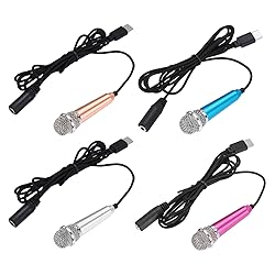 MECCANIXITY 4 Pcs Mini Microphone, Mini Mic Tiny Microphone Phone Type C Mic Small Microphone for Record Phone Voice, Gold/Silver/Hot Pink/Blue