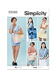 • Easy to sew lined patchwork bags are perfect for stash-bashing or fat quarters. Totes in three sizes have webbing handles and base inserts for stability; largest and smallest totes have outer patch pockets for smaller items. Belt bag and crossbody purse with bias tape bound edges have front zippers, asymmetrical patchwork fronts and adjustable webbing straps. Belt bag has parachute clip closure. See envelope for more information. . Fabrics: broadcloth, cotton types, linen types, quilting cotton fat quarters, seersucker; Lining: broadcloth, muslin; Interfacing: medium weight fusible; Tip: you can use your own fabric, upcycle your own clothing or linens, or anything else. Simplicity patterns kits come with sewing templates, sizing information, pattern pieces, instructions, and information on how to select fabric and trims with recommendations. These bag patterns can be made to in one size. Simplicity sewing patterns are proudly designed and printed in the United States. Design code S3086.