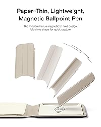All-in-one innovation: You won't need a bag anymore on your creative journey. The pocket-sized Snap Flow Phone Notepad Stand has covered it all for you, with a notepad, a pen, note storage, a reminder board, a phone card wallet, and a phone stand. Personal focus companion in the digital era: with its seamless integration into your digital system through scanning, you can capture core notes and write to analyze for deep and smooth information engagement when faced with an abundance of them. Paper-thin pen: the feather-light tri-folding magnetic pen folds up anytime for you to capture inspirational sparks and folds flat for magnetic attachment without taking up space when not in use. Designed to turn ideas into reality: the Snap Flow Phone Notepad Stand streamlines the idea-to-reality process with the Canvas for idea capture, the Storage to save ideas, and the Reminder Board to keep core notes in sight without distractions from apps and notifications. Universal compatibility: It magnetically attaches directly to Magnetic phones and to non-Magnetic phones with a metal ring that comes along with it. Please note that the metal ring only adheres to the phone cases made from PC, TPU, or aluminum metal.