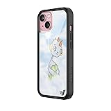 Wildflower Cases - Compatible with iPhone 15| Protective Black Bumper, 6.5ft Drop Test Certified, Women Owned Small Business | Blue White Clouds Sky Dainty Cute Trendy | Collab- Drew
