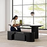 Transformer Table - Solid Wood Extendable Round Dining Table Set with Bench, Seats 4-10, Extendable Round Dining Set, Seat with Hidden Panel Storage, Black (Table + Bench)