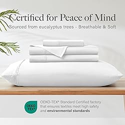 100% Tencel Luxurious Comfort with Premium Materials: Made from 100% Tencel with a 400 thread count, these sheets deliver an exceptionally soft and silky feel, creating a hotel-quality sleep experience every night. Designed for a Secure Fit: The fitted sheet features 15-inch deep pockets and all-around elastic to stay snugly in place, even on taller mattresses, ensuring a smooth and tailored finish. Includes 1 flat sheet (106"x102"), 1 fitted sheet (78"x80"), and 2 pillowcases (20"x40"). Designed to fit king-sized beds, this set offers a generous fit and luxurious look for larger bedrooms. Thoughtfully Designed for Year-Round Use: Crafted for comfort in every season, these sheets are lightweight yet durable, making them a reliable choice for any bedroom setup. Easy to Maintain for Lasting Quality: Machine washable and designed to resist wear, these sheets retain their softness and appearance over time, making them ideal for everyday use.