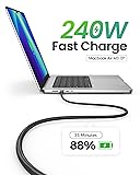 🛒【80Gbps Data Transfer】Fitee USB 4 Version 2.0 cable delivers a lighting-fast 80Gbps bidirectional data transfer speed, back up 6GB files in 1s. Reduce your waiting time and increase efficiency. This USB C data cable is fully compatible with Thunderbolt 5, ensuring top-tier connectivity. 💎【Multiple Screen Setups】Get an extraordinary visual experience with maximum resolution of 16K. Connect dual 8K/6K or triple 4K@144Hz displays to provide sharp clarity and precise detail, which is ideal for graphic designers and multimedia professionals. Up to 4K@480Hz, it reduces screen tearing, drag, lag, and improves the smoothness and responsiveness of the game. Support daisy chain to create a powerful workstation. 🎆【240W PD3.1】With a 48V/5A power delivery rating, 240W for Thunderbolt 5 cable can support up to 240W of power delivery, enabling fast charging of compatible devices. 🎈【Full Feature Application】Fully compatible with Thunderbolt 5/4, Thunderbolt 3, USB4, and USB 3.2. Sufficient length is adapted to a variety of applicable scenarios, and compatible with MacBook M4 Pro/Max, Razer Blade, ACASIS SSD, iPhone 16, iPad, USB C monitors, docking stations, GaN chargers, etc. 🏆【Robust and Reliable】Constructed with meticulous attention to quality. Ensures a reliable, stable connection every time you plug in, providing peace of mind and a consistent performance that professionals can depend on. ✔【Top Customer Service】The cable provides 2 years service, any product problems will be solved within 24 hours. Providing you with an unparalleled post-sales.