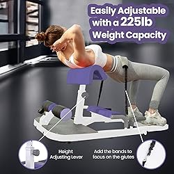 Targeted Glute and Hip Workouts: Specially designed for hip thrusts, squats, and lunges, this machine helps you build and sculpt your glutes, hips, and thighs with perfect form. Upper Body Strengthening: Equipped with 90° adjustable handlebars and resistance bands, it allows you to perform push-ups, planks, and other bodyweight exercises to effectively tone and strengthen your upper body. Adjustable Comfort: The premium padded seat expands up to 5 inches, ensuring safety and comfort during intense workouts, while enabling optimal support for waist-sculpting exercises. Core and Lumbar Focus: Use for core and lumbar exercises to strengthen your midsection, improve stability, and enhance overall fitness. Posture Improvement and Back Pain Relief: Designed to prevent spinal compression during workouts, this machine supports proper posture, enhances balance, and alleviates back pain for a safer fitness experience.