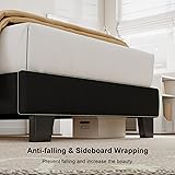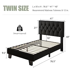 Comfort Meets Minimalist: Linen material with soft padding fully wrapped in this bed, further enhancing the coziness and comfort. The minimalist button design gives off an aesthetic vibe that fits perfectly any decor styles Strong Build Quality: Sturdy wood-steel construction crafted from metal frame and 12 solid wooden planks with Velcro reinforced ensures this twin bed frame build lasts. Thickened legs and extra added center-metal legs increase durability Carefully Conceived Design: Embedded no-sliding design keeps the mattress in place all night. EVA Foam is attached between the slats and frame, and central-metal legs add the foot pads, enjoy a noiseless night Friendly Underbed Height: 5" under-bed height is low to the ground, kindly and steadily for your family to lie down, the solid wood slats support this bed no need for a box spring needed Quick Assemble & All in One: All parts and tools are well packaged in one package. Detailed labeled parts come with a portable wrench and enough screws, you set up this bed frame in no less than 30 minutes