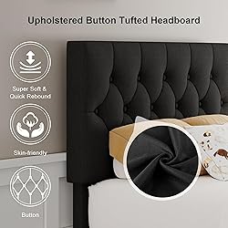 Feonase Twin Platform Bed Frame with Button Tufted Headboard, Upholstered Linen Bed with Wooden Slats Support, No Box Spring Needed, Noise-Free, Easy Assembly, Black
