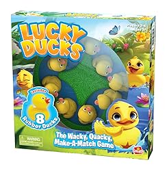 - Be the first lucky duck to find all your matching shapes and win the game! With bright colors, fun shapes, and simple matching, this easy-to-play game helps little ones build important skills while they play. The adorable rubber ducks swim and spin in their pond to keep young players engaged and giggling from start to finish. It’s the perfect blend of learning and laughter for your next family game night! Includes 1 Motorized Pond-Shaped Game Unit, 8 Rubber Ducks, 1 Sticker Sheet (4 Shape Stickers), and Instruction Manual. Recommended for 2-4 players, ages 3 and up.