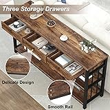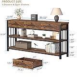 HSH Entryway Table with 3 Drawers, 55” Rustic Sofa Table with Storage Shelves, 3 Tier Console Table Behind Couch for Living Room, Farmhouse Wood Metal Entry Hallway Table for Entrance, Brown, 55 inch