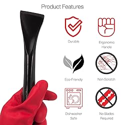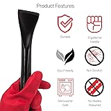DURABLE: Our scraper is molded into a single solid piece of specially infused resin that is reinforced and ultra durable making it a handy kitchen gadget for cleaning caked on food in ovens, countertops, or pots and pans. Its also a great accessory for removing other matierals off surfaces like adheives, caulking, tape, stickers and more. MULTIUSE: Use the scraper tool on any surface to clean difficult messes, hard stuck on food, dried spills and much more. Our scraper is great at removing different adhesives, decals, labels, and caulking without scratching or seriously damaging delicate surfaces like glass, windows, wood finishes, ceramics, and non-stick coated cookware. FEATURES: Our resin scraper tool is heat resistant (up-to 460F), chip-resistant, shatter proof, non-scratch, and reusable without the need to replace plastic blades. Our scraper is designed from a proprietary infused resin which is ultra durable and can be sharpened to a razor blade edge with any 400 grit sandpaper. ERGONOMIC: Our handle design is made to fit comfortably in the palm of your hand. The rounded end fits snug in any hand size so you get the maximum leverage needed to clean messes around your household, workshop, warehouse, office, school or other spaces. REUSABLE: The proprietary material used in our scraper is specially designed so it offers the best quality product for durability and reusability, and as the scraper edge becomes worn down from continued use, it can simply be resharpened with any 400 grit sandpaper back to the preferred edge.