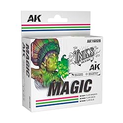 - This set contains 3 fluorescent cool-tone inks to achieve a much more vibrant touch on miniatures. The inks can be mixed with acrylic paints to achieve highly vibrant and saturated tones. They can also be used directly, either with a brush or airbrush, as filters and washes, or applied in layers over base colors thanks to their transparency. It comes in 30ml bottles. Contains: AK16041 FLUOR MAGENTA 30ML AK16045 FLUOR GREEN 30ML AK16046 FLUOR BLUE 30ML