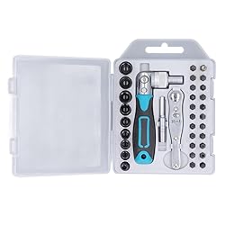 [Quick Ratcheting Design] Experience efficient and time saving with the fast ratchet mechanism that enables easy assembly and disassembly. Suitable for special working environments. [Comfortable Grip] The handle of the screwdriver is made of rubber, providing a non-slip grip and comfortable handling that reduces hand fatigue and improves overall user experience. [Strong Magnetic] Attach screwdriver bits quickly and conveniently with the built-in strong magnet, ensuring secure retention and easy swapping of bits. [Adju Ratcheting Screwdriver] Easily rotate clockwise and counterclockwise with the ability to lock in place, making it ideal for tight spaces and facilitating a range of applications. [Versatile Set] This ratchet screwdriver set includes a screwdriver handle, ratchet wrench, 21 screwdriver bits, 9 sockets, extension rod, conversion adapter, and storage case, providing everything you need for various tasks.