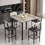 AWQM 5-Piece Dining Table Set, Dining Table Set for 4, Counter Height Table & 4 Bar Stools, Modern Kitchen Dining Set, with Upholstered Chairs, Compact Dining Set for Small Spaces, Gray