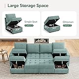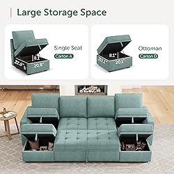 Large Storage Space: This sectional sofa design include storage space, can be used to store blankets, books and other items. This design not only increases the usefulness of the furniture, but also helps the user to keep the living space clean and orderly Save Space: This modular sofa bed can provide an extra sleeping area in a limited space without taking up extra ground space. When not in use, you can pull the bed away to make the room look more spacious and bright Versatility: The sofa bed has both sofa and bed functions. It serves both as a sofa for visitors to chat and as a bed for friends or family to sleep occasionally Modular Design: The modular sofa typically consist of separate modules that can be combined freely according to your preferences and space requirements. It adapts to different room layouts and creates individual furniture configurations Easy to Assemble: It can be easily installed according to the instructions Seven Packages: The modular couch consists of 7 boxes,may arrive at different days Overall: 55.5(D) * 101.4(W) * 35(H) inch. Weight Capacity: 300lbs/Seat