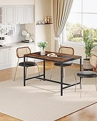 Versatile Dining Table: Beyond serving as a kitchen table, breakfast table, or coffee table, this unit provides ample space for card games, puzzles, studying, or other hobbies and activities, or can double as a desk or writing table in a study or office Retro Color-Matched Design: This sleek dining table features a top that combines a vintage hue with black for a distinctive and elegant look, bringing a rustic flair to your home, and effortlessly complementing various interior styles Ideal for Small Spaces: Measuring 47.2"L x 29.5"W x 29.7"H, this dining table is perfect for kitchen breakfast nooks, apartments, and other settings, seats 6 people comfortably, making it a practical choice for intimate gatherings or small families Sturdy and Enduring: Crafted from premium particleboard and sturdy metal, boasting an H-shaped metal frame at the bottom and 4 adjustable feet, this kitchen dining table supports up to 220 lb, ensuring a stable and secure dining experience Easy Assembly: The dining table has a simple structure, and the package includes detailed instructions, all necessary parts, and installation tools to make assembly a breeze. Follow the step-by-step guide to easily set up and enjoy it right away