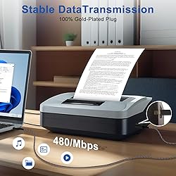 【Universal Printer Cable】: 6FT Long USB Printer Cable is ideal for connecting your desktop document scanner, thermal printer, server, MIDI controller, MIDI keyboard, development board, HD camera, server, hard drive, camera such as HP, Canon, Lexmark, Epson, Dell, Xerox , Samsung and other USB 2.0 B devices to a laptop, computer or other USB-enabled device. 【Wide Compatibility】: This printer cable is compatible with Epson XP-600/XP-200/WF-7710/XP-225/XP-245/XP-425/XP-446/XP-440/XP-630/XP-310; Epson Workforce 545; HP Envy 5660/4520/5055; HP Deskjet 3050/1112/2300, HP Photosmart 5510/5520/7520/C4750, HP 8600 office pro, HP Laserjet Pro M118DW; Brother MFC L-27000W, Brother HL-L2300D, MC8000 MIDI controller; Bluetooth Cannon MX492, Akai USB EWI, MIDI controller, MIDI keyboard, Yamaha digital piano, DAC etc. 【High Speed Transfer】: The USB Type A Male to B Male Printer cable constructed with corrosion-resistant, gold-plated connectors for optimal signal clarity and shielding to minimize interference. Data transmission speed reaches 480Mbps, and the USB B cable is backward compatible with full-speed USB 1.1 (12 Mbps) and low-speed USB 1.0 (1.5 Mbps). Plug and play, no need to install any plug-in, convenient and fast. 【High-Qulity Structure】: High-purity copper wire, and increased the number of core wires and shielding layers to make long printer cable have a long service life and more stable connection. Premium nylon braided cable adds additional durability and tangle free, Printer usb cable with test of 20,000+ bend. The flexible and wear-resistant armor nylon braided material offers stronger protection. 【What You Get】: 1-Pack 6FT Nylon Braided USB Printer Cable(Black). We provide 24-hour friendly customer service, 30-day free refund or replacement, 12-month worry-free w arranty. If you have any question while using, please tell us, we promise to solve your problems within 24 Hours!