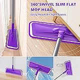 [BPAWA Microfiber Mops for Floor Cleaning]: This is a ultra slim but durable flat floor mop for hardwood floor cleaning comes with 8 premium reusable microfiber mop pads (compatible with Swiffer Powermop)and a practical scraper. The floor mops with washable pads comes with an adjustable long handle, making it ideal for high places and small spaces,bathrooms and kitchens. This microfiber mop allows you to clean your home smoothly and gives you an enjoyable unobstructed mopping experience. [Reusable Microfiber Mop Pads]:The laminate floor mop package comes with 8 machine washable mop pads for replacement,which are secured with strong velcro. The reusable mop heads of the hardwood floor cleaner mop can quickly absorb and remove water, dust,pet hair,oil stains,hair and other grime without leaving a trace, allowing the mop to be used as both a wet mop and dry mop for a long time. Newest purple striped fibers make these durable floor mop cloths even more stylish and efficient. [360°Rotating Slim Mop Head]: The wood floor mop for cleaning features a ultra-slim flat mop head that can be flexible rotated 360 degrees, allowing you to easily mop all hard-to-reach areas in your house, such as deep corners in kitchens and bathrooms or under the sofas, beds,cabinets and other furniture. The trapezoidal design makes the flat floor mop head easier to clean the baseboards and corners, which makes the floor cleaning mop a simple but convenient and effective cleaning tool. [Lightweight & Adjustable Handle]: The hardwood floor mop comes with 4 pieces durable and lightweight ergonomic metal poles to compose mop handle, which make the microfiber mop length extendable and easy for both adults and kids to use without bending over. This dust mop has a maximum length of 150 cm (59 in), and a minimum length of 81.3 cm (32 in) when the 2 metal pole sections are removed, the mop can easy to clean not only floors and corners, but also higher window glass, walls and ceilings. [Suitable for All Hard Surfaces]: When combined with the multiple functions of the soft microfiber dusting pads and practical scraper, this dust mop for hardwood floor mopping can easily and safely handle all stubborn stains on most flat hard surfaces floors and walls, such as hardwood, laminate, tile, wood, marble, stone, cement, glass, ceramic and even plank vinyl flooring, etc. The mop cloths are soft and big enough so that its really safe for all the floors, no bruises and scratches.
