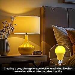 Effective Keeping Bugs Away:These bug light bulbs use a 530-590nm wavelength spectrum to Keep bugs away. The warm amber glow cres. A must-have for outdoor spaces Easy Installation & Versatile Use: With an A19 shape and E26 base, these bug lights for outside fit most fixtures. Emitting 720 lumens of soft yellow light, they’re ideal for porches, gardens, and yards, creating a cozy ambiance. Energy-Efficient & Cost-Saving: These LED bug light bulbs 9W. Save on electricity bills while enjoying long-lasting, energy-efficient lighting for your outdoor spaces. Perfect for Any Occasion: These bug lights for outside add a warm glow to Halloween, Christmas, parties, and special events. Use them indoors or outdoors to enhance your home’s decor and impress guests. Safe & Durable Design: These bug light bulbs are free from UV, IR, lead, and mercury, making safe. For outdoor use, pair with a weather-protected fixture.