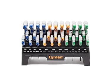 - Our Heritage series of tools incorporates Lyman’s nearly 150 years of experience producing quality equipment and tools for sportsmen. The 30 Piece Heritage T-Handle Hex and Torx Set includes all the wrenches that you’ll need for your firearm, outdoor sports, household, and general maintenance jobs. The T-Handle wrenches are made of tough chrome vanadium steel and feature a comfortable grip that gives you all the torque you’ll need to break free stubborn bolts. Hex wrenches feature a long ball end and a stubby standard hex end and come in both inch and metric sizes. Torx wrenches also have long ends for those hard-to-reach bolts and short ends when more leverage is needed. The set includes 10 SAE fractional hex sizes from 3/32” to 3/8”, 10 metric hex wrenches from 1.5mm to 10mm, and 10 Torx wrenches from T7 to T40. All are packaged in a sturdy organizer stand which can either be placed on your bench or be hung on a wall or pegboard.