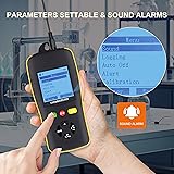 Temperature Humidity Meter with Dew Point&Wet Bulb -- Simultaneous measurement and record data of the temperature of ambient (-40℃ to 125℃), dew point (-40℃ to 80℃), wet bulb (-40℃ to 80℃) and relative humidity (0 to 100% RH) data; Supports ℃/℉/K temp units switching; Comes with calibration certificate Digital Temp Humidity Logger with Probe -- USB port, automatically generate TXT/CSV/XLS/PDF data reports, no software required; Data capacity is 49920 groups, measurement rate is 1s/time; Displays current/ MAX/ MIN/ AVG temp and humidity values on LCD screen,check environmental stability in time; Comes with external probe, can measure and record temp humidity data in hard-to-reach places Parameters Settable -- With the intuitive interface, it's easy to set up parameters such as alarm range, auto-off mode, backlit time, logging interval and so on via pressing button to meet your requirements; Supports regenerate file function(only for recovering recent records or deleted data) Multifunctional Wet Bulb Thermometer Recorder -- With sound alarms, and the buzzer will immediately sound an audible alarm when temp or humidity exceeds range, ensuring a stable environment (Press any button can stop the sound alert); Backlit design makes clear reading even in dark environments; Auto-off function save battery life Handheld Temp Humidity Logger -- Anti-slip and anti-collision design; The foldable stand and hanging design allow items to be placed in specific locations for the convenience of busy people; Comes with a portable box for portability and storage