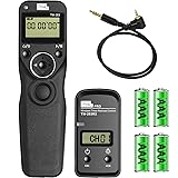 Compatible models: TW-283E3 Compatible for Canon R6 R7, R10, EOSR, EOSRP, EOSRA, XT, XTi, XS, XSi, T1i, T2, T2i, T3, T3i, T4, T4i, T5, T5i, T6i, T6, T7, T7i, T8i, SL1, EOS 2000D, 1500D, 1300D, 1200D, 1100D, 1000D, 800D, 850D,760D, 750D, 700D, 650D, 600D, 550D, 500D, 450D, 400D, 350D, 300D, 100D, 60D, 60Da, 70D, 77D, 80D, M5, PowerShot G1X, G1X Mark II, G1X Mark III, G3 X, G5 X, G10, G11, G12, G15, G16, SX60HS, SX50HS, SX70HS. For Fuji X-T3, X-T4, X-T5, X-H1, X-H2, X-H2S, GFX100, GFX100S, GFX50R, GFX50SII, GFX100 IR, X-Pro3, X-T3, X-T4, X-T30, X-T30II, X-A7, X-E1, X100V; Pentax istD, istDL, istDS, istDS2, istDL2, K100D, K110D, K200D, K500, K100D, K20D, K10D, K-30, K-50, K-7, K-5, K-5II, K-5IIs, K-3, K-3II, K-1, K-1 Mark II, 645Z, Olympus OM-1, OM-5, E-M1X, E-M1 Mark II, E-M1 Mark III, E-M5 Mark III imer schedule shooting: 1.timer functions can be set to 999 hours 59 minutes and 59 seconds in one second increments: interval timer, long exposure timer (it can use interval timer and long exposure simultaneously) and repeat timer schedule interval time; 2. Number of shots can be set from 1 to 999; 3. Repeat times can be set from 1 to 999. When capturing the beautiful moments of sunrise and sunset and flowers bloom and fade , you don't need to wait for the whole time . You can set delay timer,exposure time, interval time, number of shoots, repeat shooting interval time and repeat times. It features no directionality, 80M+ remote distance and ultra- powerful anti-interference ability. With 30 channels for options,it can avoid interference caused by other similar devices. Available to control different brand's cameras and models by changing different camera connecting cable.The transmitter and receiver adopts LCD screen which is more easy and simple to handle.