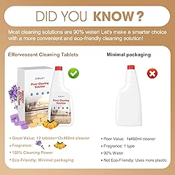 - The ZORAST Effervescent Floor Cleaning Tablets are a convenient and effective way to clean your floors. This pack includes 12 tablets (6 lavender, 6 sweet orange) that dissolve quickly in water, creating a low-foam, non-toxic cleaning solution. Perfect for vacuum mop users, these tablets ensure a smooth, clog-free cleaning experience for all hard floors, including wood, tile, marble, and stone.Infused with refreshing lavender and sweet orange scents, your home will stay smelling fresh long after cleaning. The gentle, non-toxic formula is safe for homes with children and pets, offering peace of mind with every use. Plus, the compact tablet form eliminates the need for bulky liquid bottles, helping reduce plastic waste and save storage space.Enjoy an easy, eco-friendly clean with ZORAST Effervescent Floor Cleaning Tablets—the perfect solution for a sparkling, fresh home.
