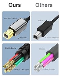 ****USB 3.0 Printer Cable Main Features*** 1. Male to Male: USB-C to USB-B 3.0 Port. 2. Durable: Gold-plated connectors & Braided Cord. 3. Widely Compatible: With various USB B printers and devices. 4. Plug and Play: More stability than Wi-Fi. 5. Available in: 3.3/6.6/10 Feet. 【Universal Printer Cable】This USB printer cable is widely compatible with scanners, printers, servers, cameras, hard drives, electronic pianos, MIDI keyboards, microphones, DAC decoders, and other peripherals that use a USB B port, such as HP, Canon, Epson, Brother, Lexmark, Dell, and SUM SUNG printers. It easily connects to laptops, computers (Mac/PC), or other USB-enabled devices for data transfer. 【High-Speed Data Transfer USB B Cable】This USB 3.0 C to B cable provides fast and reliable data transfer between your printer and computer, supporting speeds of up to 480 Mbps for seamless printing performance. Ideal for printing, scanning, and file backups. More stable and faster connection than Wi-Fi, reducing delays and boosting productivity. Fully compatible with older devices (USB 1.1 and 1.0), it ensures secure, seamless data transfer for printers, scanners, and external drives. 【Durable HP Printer Cord】Made with high-quality, corrosion-resistant, gold-plated connectors for optimal signal clarity and shielding to minimize interference, this printer cable is built with a durable braided outer layer offering superior resistance to wear and tear. The flexible design ensures easy use and storage. 【Plug-and-Play USBC to B Cable】No drivers are needed with this printer cable. Simply plug the USB C end into your computer and the USB B end into your printer for an instant connection, with hassle-free setup for both Windows and macOS devices. It provides more stability than a Wi-Fi wireless connection.