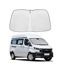 【PERFECT FOR】Ford Transit sun shade perfect for Ford Transit 2015 2016 2017 2018 2019 2020 2021 2022 2023 2024 2025 2026. It provides full windshield coverage 【240T Reflective Polyester】Ford Transit foldable windshield sun shade made of 240T reflective polyester.It insulates better from heat and light, This keeps the sun/heat out and makes your car so cool in the heat 【EASY TO FOLD】Ford Transit sunshade features a collapsible design that pops up and folds easily. You can easily tuck it into your car door pocket. Ensure it takes up little space in the car when not in use 【KEEP COOL】Ford Transit window shade will keep the interior of your vehicle cool. Having it can keep your car's steering wheel and interior surfaces much cooler on hot summer days. 【PROTECT】 Ford Transit windshield sun shade not only have a reflective silver side to keep your car cool and protect the interior surfaces from baking intensely in the sun. But also has a black privacy side.