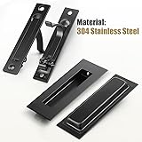 Note: This pocket door hardware is for solid wood doors only. Do not purchase for hollow doors. 304 STAINLESS STEEL: The flush finger pulls are made from durable 304 stainless steel with a matte black finish, while the edge pull is crafted from zinc alloy with the same matte black finish, Rust-proof and sturdy. TEMPLATE INCLUDED: With the provided template and step-by-step guide, you can easily find the right screw holes and get the installation done without any fuss. Even if you're not very handy, the process will be straightforward and easy. GENTLE TOUCH: The flush finger pulls have no sharp edges, making them comfortable to use with the perfect grip for easily opening pocket doors. Featuring an edge pull to effortlessly slide your door out of the pocket, and flush pulls for smooth, easy operation when opening and closing the door. Ergonomic Size that fits your hand: Length: 6" (150mm), Width: 2" (50.8mm), Groove Depth: 0.4" (10mm), Groove Length: 4-3/4" (12.01mm), Groove Width: 1-3/16" (30mm). Buy with Confidence: Your purchase includes flush finger pulls*4, edge pull *2, hardware, template and a detailed installation guide—no extra hardware needed. If anything doesn't meet your expectations, we've got your back with replacements or refunds.