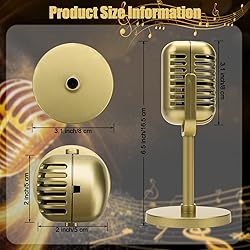[Value Set]: The vintage prop mic package includes 4 microphone props model, only 6.5 × 2 inches, please pay attention to microphone size before purchasing. [ine Workmanship]: The vintage prop mic is made of high-quality plastic materials, the appearance of a metal simulation process, so that it looks the same as the real microphone, but it is lightweight, more convenient to carry, strong and durable, and not easy to deform. [Old-school Style]: Imitation metal design, and retro style, can make the classic retro style microphone prop with a retro theme party, retro decoration, rock party, and other activities perfect fusion. [Nice Props]: The vintage microphone prop with stand is widely used, not only can decorate retro-style rooms, theme parties, and stage decorations but can also be used for shooting props, making your photos look more historical. [Nice Decoration]: The retro microphone props model has a delicate and beautiful appearance, which is very similar to a real microphone. It can be a good party decoration and can be used as a prop for a long time. ( Prop, no actual microphone function ).