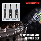 WORKPRO Wing Nut Driver Set 3 PCS, Power Wing Nut Driver Bit (9mm,12mm,15mm), 1/4 Inch Hex Shank Nut Driver, Wing Nut Socket for Wing Nut, Eye Bolt, Wire Twisting
