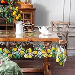 ARTABLE Clear Table Cover Protector Vinyl PVC Rectangle Table Cloth with Floral Print Pattern Oil Proof Wipe-able Plastic Tablecloths for Dining Tables Parties Holidays (Lemon, 60 x 84 Inches)
