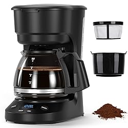 Electactic 5-Cup Programmable Drip Coffee Maker, a compact coffee machine with a digital clock and 24-hour programmable timer, featuring Auto Shut-Off, and a Removable Filter Basket for Home & Office.