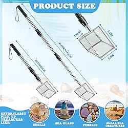 Product Includes:You will receive two shark tooth sifter set with long retractable handles, great value for money to enjoy beach scavenger hunts with friends and family Reliable Material: The head and handle of the beach sand sifter shovel are made of stainless steel metal, which is sturdy and durable and not easy to rust; the handle is designed with PVC anti-skid and comes with a nylon lanyard for a comfortable grip and easy hanging. It can also be put on your wrist to prevent the beach shovel from slipping out of your hand Upgraded Shovel Head: Our seaside shell scooper spoon head is a new upgraded design, unique. Using stronger material than traditional beach sand sifter head, and adding support points in the middle of the spoon mesh, it has a stronger bearing force and is not easy to break, so you can easily sift out unwanted sand and get the desired shells, shark teeth, sea rocks, etc. easily Easy To Use: The sand sifter for shark teeth shovel head and pole can be easily connected and fixed with screws, the pole is a three-section telescopic adjustable length, which can be extended from 16.5 inches to 36.5 inches, both adults and children can use it, allowing you to reduce bending and back stress and avoid back pain. (About the use of the length adjustment of the handle, you can refer to the product video or manual) Widely Used: This sand sifter for the beach is suitable for all kinds of outdoor beach activities, such as summer beach, swimming pool, beach barbecue, beach party, etc.; Bring the beach shovel along with you on your adventures, collect sea glass, shells and all sorts of things on the beach, enjoy the happy time with your family and friends. It is a must-have for all beach trips