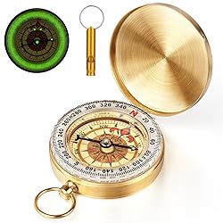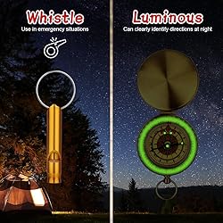 High-quality materials: Our navigation compass is made of sturdy copper metal, waterproof and shockproof, with high sensitivity and stability. The flip cover design not only adds a touch of nostalgia, but also ensures a secure closure to protect the internal components from damage. Tips for use: The compass must be held horizontally so that it can rotate freely. When using the compass, do not approach ferromagnetic objects, high voltage cables and electromagnetic devices to avoid errors and reduce the sensitivity of the compass. Luminous function: This navigation compass can work in any weather. It has a luminous function after absorbing enough sunlight, so you won't get lost even at night. Great for use during the day and night. Easy to carry: The pocket compass is equipped with a hanging ring, which can be hung on a school backpack, used on a keychain. The compass is small and lightweight, can be put in your pocket, it is easy to carry and not easy to lose. You will get: 1 compass and 1 emergency survival whistle. Perfect for camping, hiking, mountaineering, orienteering and any other outdoor activities.