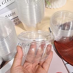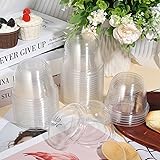 - 100 Pack Disposable Dessert Cups, Stackable Clear Plastic Cups with Lids, 10oz Mini Parfait Cups with No Holes Flat Lids, Disposable Party Cups for Snacks Yogurt Fruit Ice Cream Cupcake Iced Cold Drink Features: Widely Occasions: Clear 10oz plastic cups with lids, ideal for ice cream, pudding, cupcakes, parfait sundaes, mousse, and any desserts. also for cold drinks. Best choice for family, ice cream shop, bakery, carnivals, parties, gatherings, picnics, or any other event. Elegant Design: The lid is high enough to decorate the dessert,the dessert cups with lids can effectively protect the frosting of the dessert and help to maintain the integrity of the dessert. Specifications: Material:sturdy and durable plastic Color:clear Capacity:10oz / 300ml Size: Plastic Cups: 2.95 ×3.7 inch Package Includes: 100 × clear dessert cups with flat Lids(no hole) Note: 1. Due to the display, camera, or other factors, there may be some chromatic aberration. Please refer to the physical product. 2. Please allow a little error on the size due to manual measurement. 3. DO NOT use them for hot drinks. 4. Some of the cups may be broken during the shipping process, please contact us to solve.