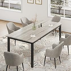 --Spacious for Gatherings: The rectangular dining table comfortably seats six to eight people, making it perfect for family dinners or gatherings with friends. Measuring 70.9''x35.4''x29.5'', it offers ample space for food, drinks, and conversation --Sturdy and Stylish: Constructed from thick engineered wood and durable metal legs, this long dining table provides a modern industrial look without sacrificing stability. Rounded corners enhance safety while adding elegance to any room decor --Versatile Multi-Functionality: This large wooden table serves not only for dining but also as a computer or writing desk. Its sleek design makes it an ideal workstation for home offices, study areas, or conference rooms, meeting a variety of needs --Easy Maintenance: The dining table features a waterproof surface, ensuring easy cleanup after meals or work sessions. Enjoy peace of mind knowing spills and stains can be wiped away effortlessly, keeping your table looking pristine over time --Simple Assembly: Assembling this dinette table is easy with the included clear instructions for quick setup. Due to its size, it's recommended to have two people for assembly, ensuring a smooth process for immediate enjoyment of this functional piece