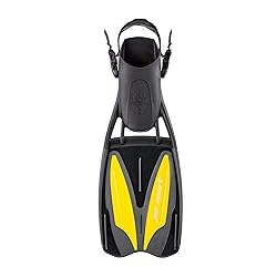 Three-material blade construction optimizes flex to maximize kicking performance. Drag-reducing vents substantially decrease resistance on both up and down strokes. Big blade generates a powerful response in the water and improves stability and maneuverability. Ergonomic foot pocket molds to your foot for total comfort. Quick-release buckles simplify strap adjustment and make donning and doffing easy. Effective non-skid pattern protects against slips on wet surfaces. Small sizing is ideal for smaller feet.