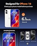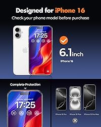 【Unbreakable TOP 9H+ Glass, the 2nd Screen for Your iPhone】: The UNBREAKcable iPhone16 screen protector is made with reinforced technology. Boasting unparalleled shatter resistance and durability. The tempered glass protector can effectively protect your iPhone from unwanted scuffs and scratches by knives, keys and some other hard substances. 【Case-Friendly Design】: Engineered with a 0.3mm gap around the edges to seamlessly pair with your phone case—no lifting, no gaps, no compromise on protection. Narrow space on the edges makes it compatible with phone cases. 【No Residue Removal】: Advanced adhesive technology allows clean peeling—leaves no sticky marks or scratches, keeping your screen pristine for reapplication — protects your phone’s original screen quality. 【Easy Installation & Bubble free】: The UNBREAKcable screen protector is specially designed for iPhone 16 6.1 inch screen, 100% touch accurate. It's a two-pack and comes with an auto-alignment installation frame for effortless adhesion. Super easy to install. Thanks to its auto-adsorption technology, can self-expel any air bubbles for easy installation. Leaves no traces when disassembled. The perfect crystal spotless experience makes you unwilling to stop. 【HD Clear 99.99% & Touch Sensitive 】: Ultra-thin and ultra-clear material make it retain amazing clarity for viewing experience, the super-thin glass material preserves touchscreen sensitivity. High-quality design and engineering, durable tempered glass to deliver the brightness, sharpness, and detail you expect from your phone screen. 【Anti-Fingerprint & Shatterproof Scratch Resistant 】: The UNBREAKcable screen protector for iPhone 16 is coated with a Hydrophobic and oleophobic clear layer making it anti-fingerprint and smudges. With 9H hardness tempered glass, protecting your iPhone 16 screen from accidental scratches, falls, and bumps.