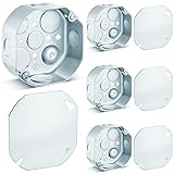 4 Set Electrical Junction Box with Cover: with 4 octangle electrical outlet boxes, each measuring 4x4 inches, and 4 pieces of Octagonal junction box covers collectively making your renovation or construction project a breeze, offering a good experience with our package that includes necessary components for a comprehensive electrical makeover Galvanized Steel Construction: crafted from galvanized steel, our electrical junction box and cover boast quality and strength; They are sturdy, resilient and provide the much needed sturdiness for your long time electrical needs; Plus, they are suitable for 2 hour fire rated wall, ensuring good efficiency and longevity Smart Design for a Safer and More Organized Wiring System: every electric junction box boasts of multiple knockouts including 4 pieces of 1/ 2'' knockouts and 4 pieces of 3/ 4'' knockouts; This thoughtful design enables a clutter free and secure wiring system, embodying a function focused approach to cater to your electrical demands Standard Size Accommodates a Wide Array of Electrical Requirements: the electrical junction box comes in a standard size of 4 x 4 inches, 1-1/ 2'' deep, With a generous 15.5 Cu. In; Capacity, this junction box can accommodate a large number of electrical connections and components; Providing ample space for safely housing electrical wires and devices; Please measure the junction box before ordering Versatile and Highly Adaptable for Diverse Applications: whether it's home renovation projects, new builds, or commercial construction, our metal junction box fits a variety of applications; The versatility reflects in their design and makes it a suitable choice for different types of electrical system setups; Is the perfect choice for all your electrical junction box needs; It offers durability, safety, versatility, and ease of use, making it a top - tier product in the market
